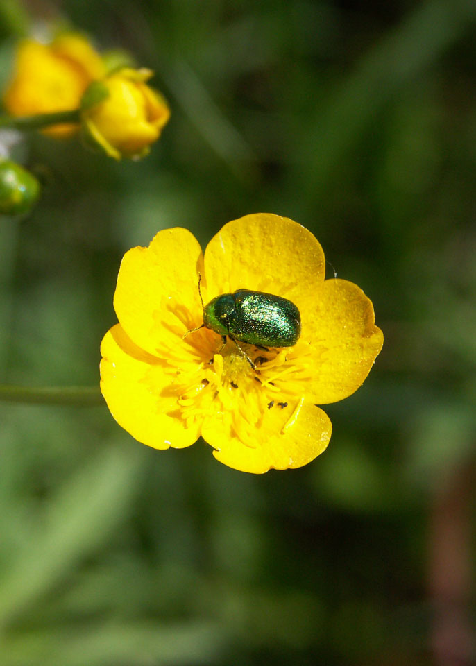 Hallo, ich bin der grün glänzende Ampferkäfer. Mein Name Gary Glitter. Ich dachte, ich setz mich mal auf eine wunderschöne gelbe Butterblume, dass Fred ein wunderbares Foto von uns machen kann und sich viele Menschen an unserem Anblick erfreuen können.